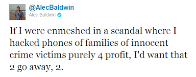 Good for Baldwin. Bad for Fox. We lose. The reason for the edit is that Fox takes ‘phone hacking very seriously’ and didn’t want to ‘make light’ of the situation. Sure.