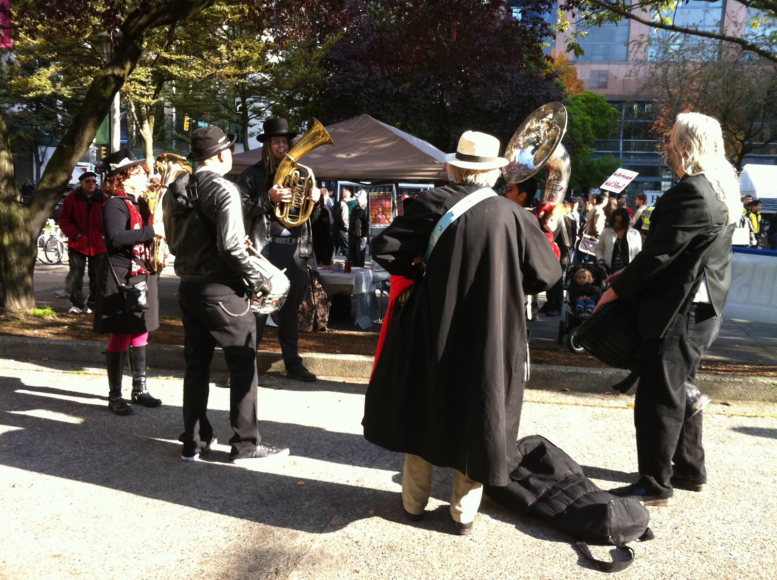 11:30 Four or five occupyers spotted helping lift motorized wheelchair over curb for woman passing by. This is by far the most polite, sunny ‘protest’ I’ve ever been to. Most of the people here are not hardened protesters as the media wants you to believe. I bet this is a first time for most of these people.