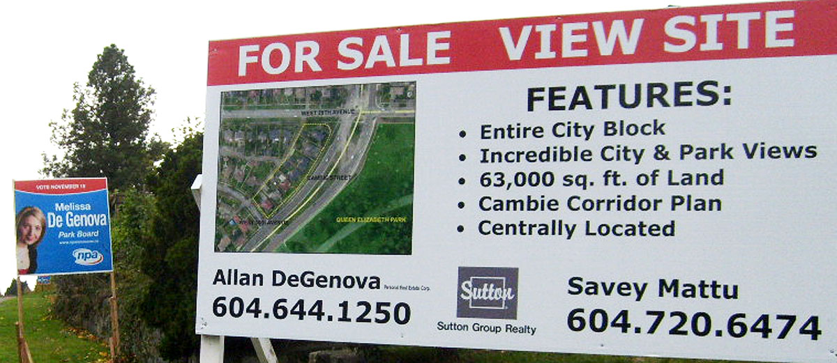 Those two signs in the image above are staked out on the lawn of one of 7 contiguous properties in the Cambie corridor where the houses appear to be abandoned.