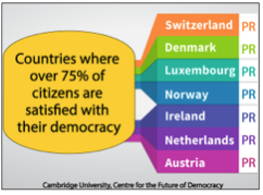 And then there is another commonality that may be an important factor—they all use proportional representation (PR) voting systems. Even among the Anglo nations, the one that uses a PR system (New Zealand) showed the greatest satisfaction. Is it possible that if your government is democratically elected, i.e. election results accurately reflect the will of the people, you have a greater confidence and greater satisfaction with democracy? Now there’s a thought.