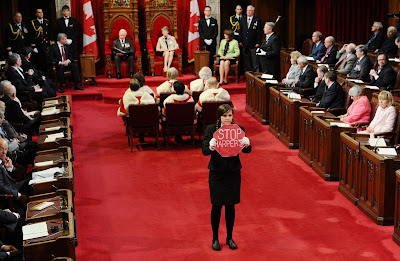 Prediction: photo of Brigette DePape holding Stop Harper sign in Chamber will define Canada for next decade